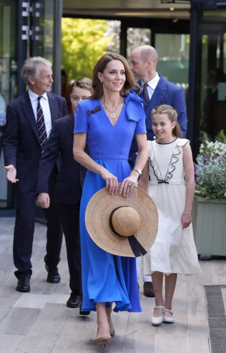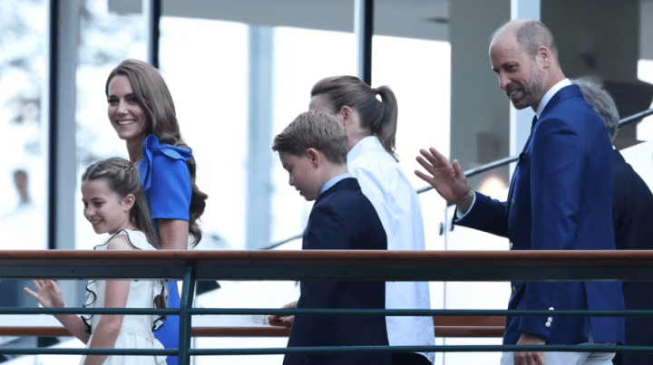 La princesse donne le clap de fin du tournoi tennistique. La finale simple messieurs oppose le numéro 2 Carlos Alcaraz au numéro 1 Yannick Sinner. Le couple héritier n’est pas venu seul. Les Galles ont emmené George et Charlotte.