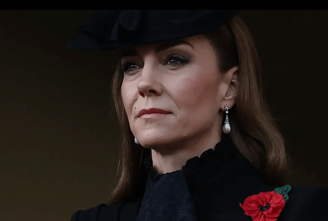 Ce jour de communion nationale réunit les Windsor. La princesse de Galles est aux premières loges. Une broche symbolique orne son pardessus de deuil.