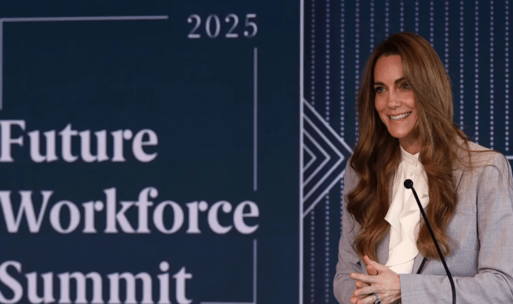 Pour présider au sommet de la petite enfance, Kate a enfilé un tailleur-pantalon gris et une blouse à jabot. Un look de décideuse très efficace pour séduire le monde des affaires. Initié en 2023, ce projet ambitieux conduit par la plus charismatique des princesses, draine dans son sillage de très influents leaders d’entreprises. Son altesse a pris la parole pour présenter son nouveau programme : cinq initiatives ayant pour objectif d’aide un million d’enfants d’ici 2026. Dans son allocution, la maman de George, Charlotte et Louis a rappelé que “ l’amour que nous recevons dans notre enfance modèle profondément la personne que nous devenons.” L’amour est aussi le thème principal du concert de chants.