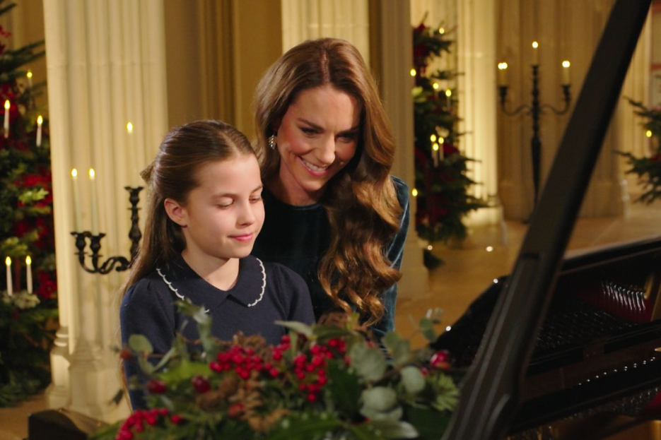 Comme tous les ans à la même date, les Windsor empruntent le sentier forestier qui mène à l’église où la princesse Charlotte a été baptisée. Le couple souverain conduit la procession, les héritiers suivent. George, Charlotte et Louis s’arrêtent en cours de route. Admirateurs et admiratrices leur offrent des cadeaux. Les enfants font le plein de chocolats, nounours et fleurs. Manteaux et chapeaux rivalisent d’élégance. Le vestiaire met en avant le style conservateur de la famille d’Angleterre. Les photographes s’attardent sur Kate et William, le couple-star de la monarchie. La princesse n’a rien changé à sa silhouette. Elle privilégie la longueur et les accessoires bien chauds. Son choix s’est porté sur un manteau marron à carreaux. Un chapeau assorti surplombe sa coiffure. Hier, jour de la diffusion du concert “Ensemble à Noël “, la princesse de Galles a réservé une belle surprise à ses abonnés. La maman de Charlotte a mis sa fille à contribution : le duo a interprété une pièce de musique au piano.