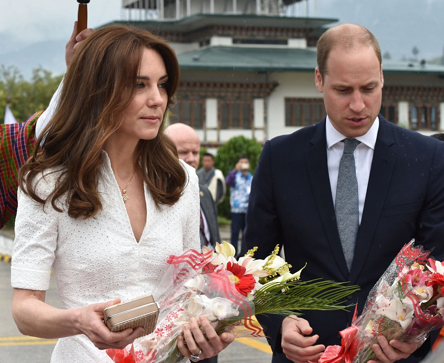 Fairwell Thimphu. Il pleut sur le tarmac de l’aéroport de Paro. L’ensemble blanc en broderie anglaise Alexander McQueen (Asie du Sud-Est) tranche avec la grisaille ambiante. A son cou, la duchesse Catherine étrenne le collier en or et diamant que lui a offert la reine Jetsun. Le médaillon représente l’un des huit symboles du Bouddhisme: il symbolise l’alliance de la sagesse à la compassion Le petit … Continue reading Les adieux au Bhoutan
