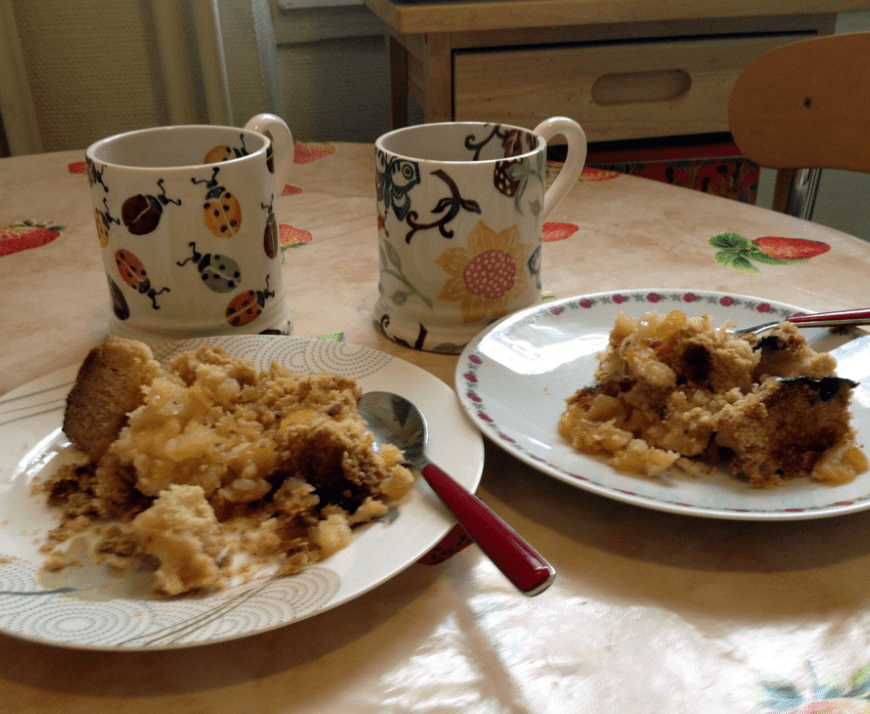 Cette recette lui vient d’une amie dont la grand-maman était anglaise. Christelle est ravie de la partager avec le BDKM. Un dessert à préparer sans l’ombre d’un remords, alors que les magazines proposent mille et uns régimes pour rentrer dans le maillot de l’été. Enjoy! Ingrédients 450 gr de pommes-170 gr de farine-85 gr de beurre-85 gr de sucre en poudre Préparation Mettre les fruits … Continue reading Le crumble aux pomme de Christelle